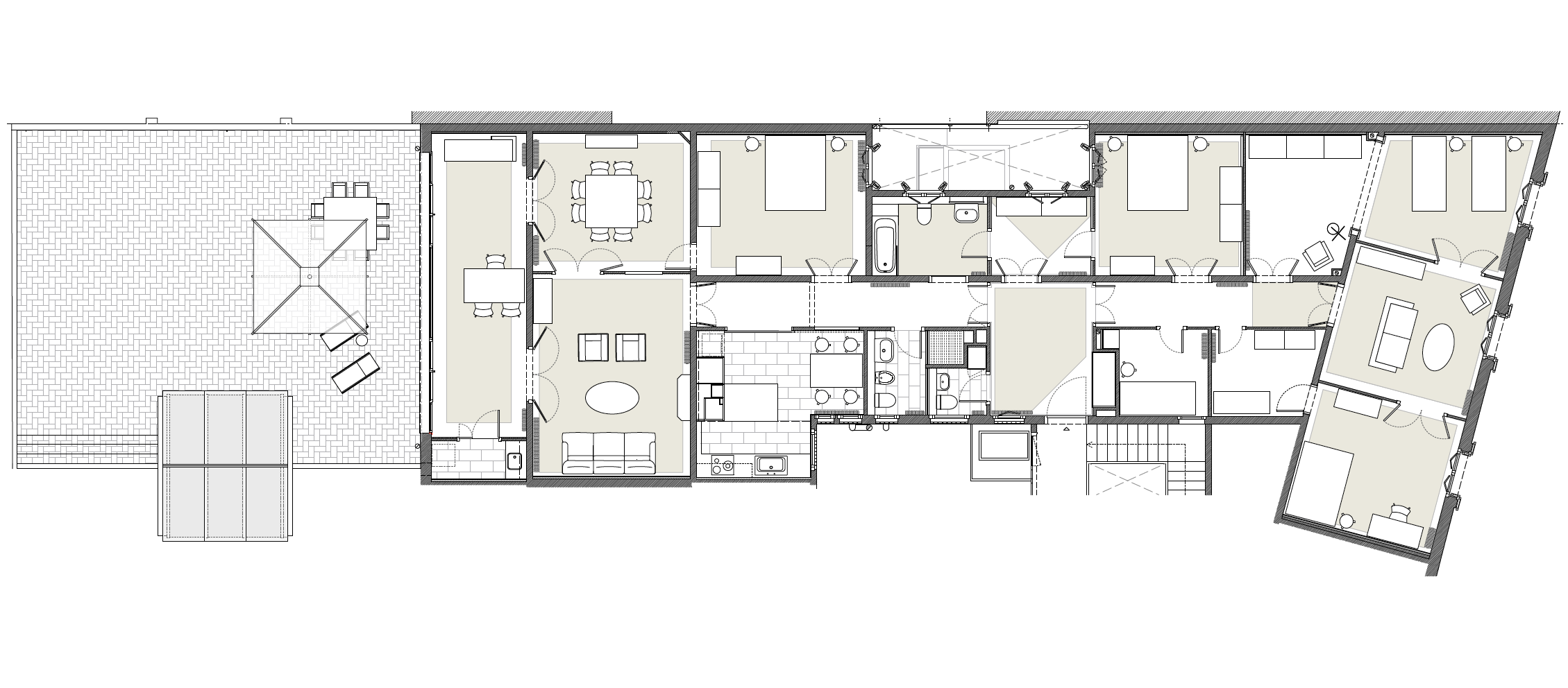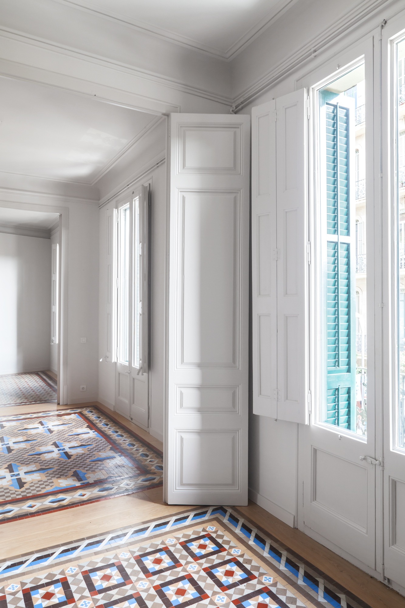 Straddling the Gràcia and Sant Gervasi neighbourhoods, this building on Avinguda de la República Argentina adheres to a classic Eixample typology with two flats per floor and central and lateral light wells. The 250 square metre apartment shown here is a sequence of more than ten undefined adjoining rooms.