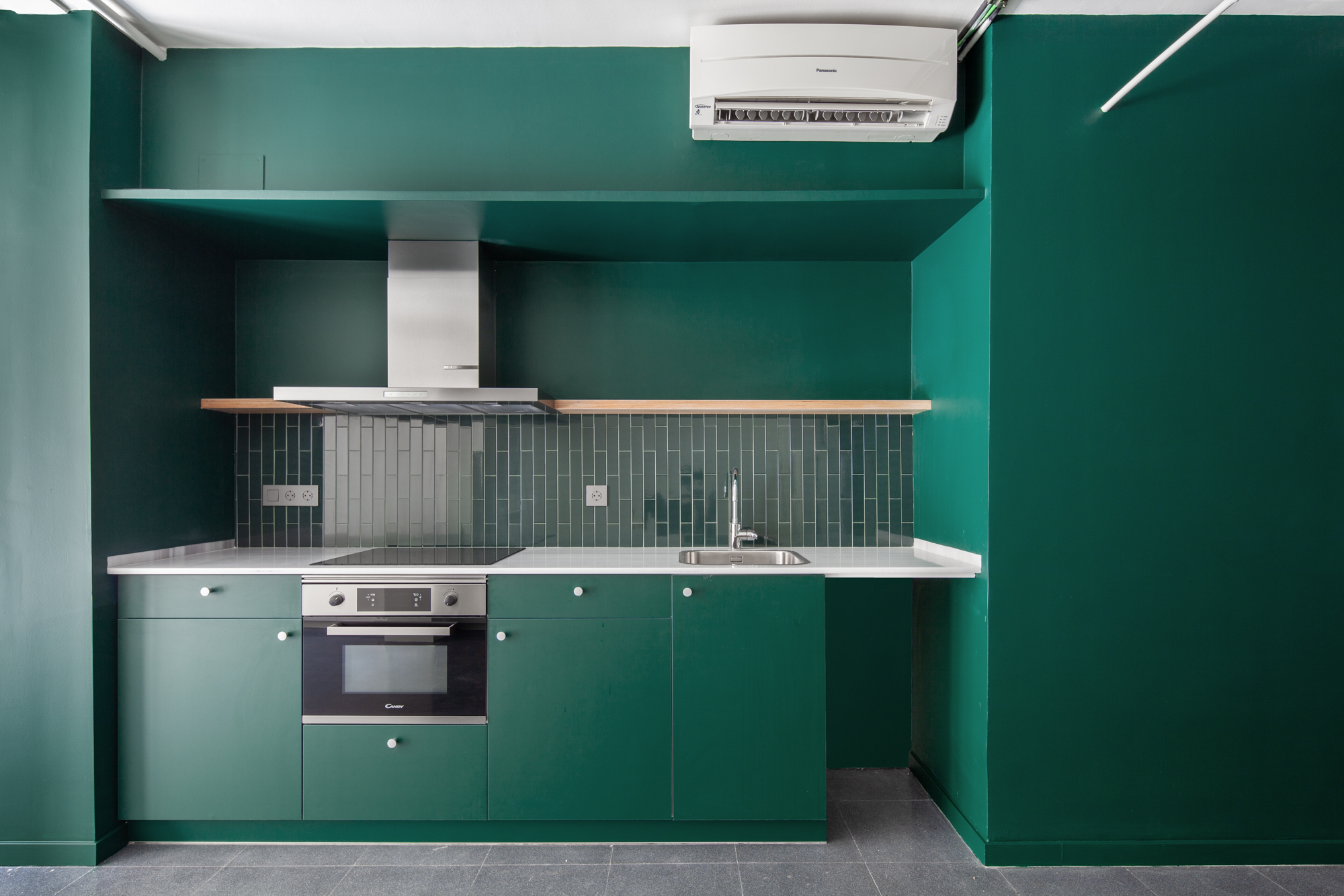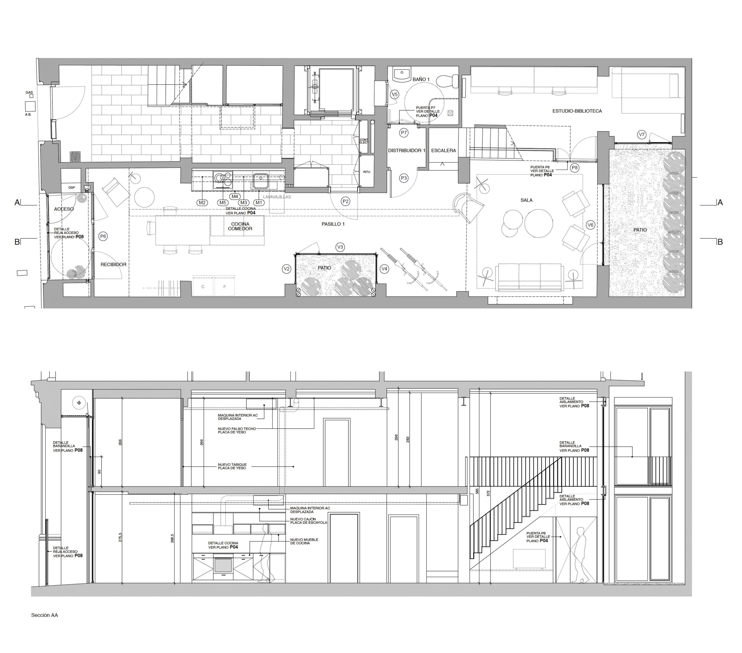 El esquema buscaba resolver los elementos básicos de un programa domestico: cocina-comedor, áreas comunes, dormitorios, manteniendo los aspectos más destacados de un antiguo espacio de industria ligera: elementos estructurales expuestos, techos inusualmente altos en ciertas áreas y dos generosos patios de luz (potenciales jardines llenos de plantas). Para ello, los pasillos y las habitaciones “per se” se redujeron al mínimo.