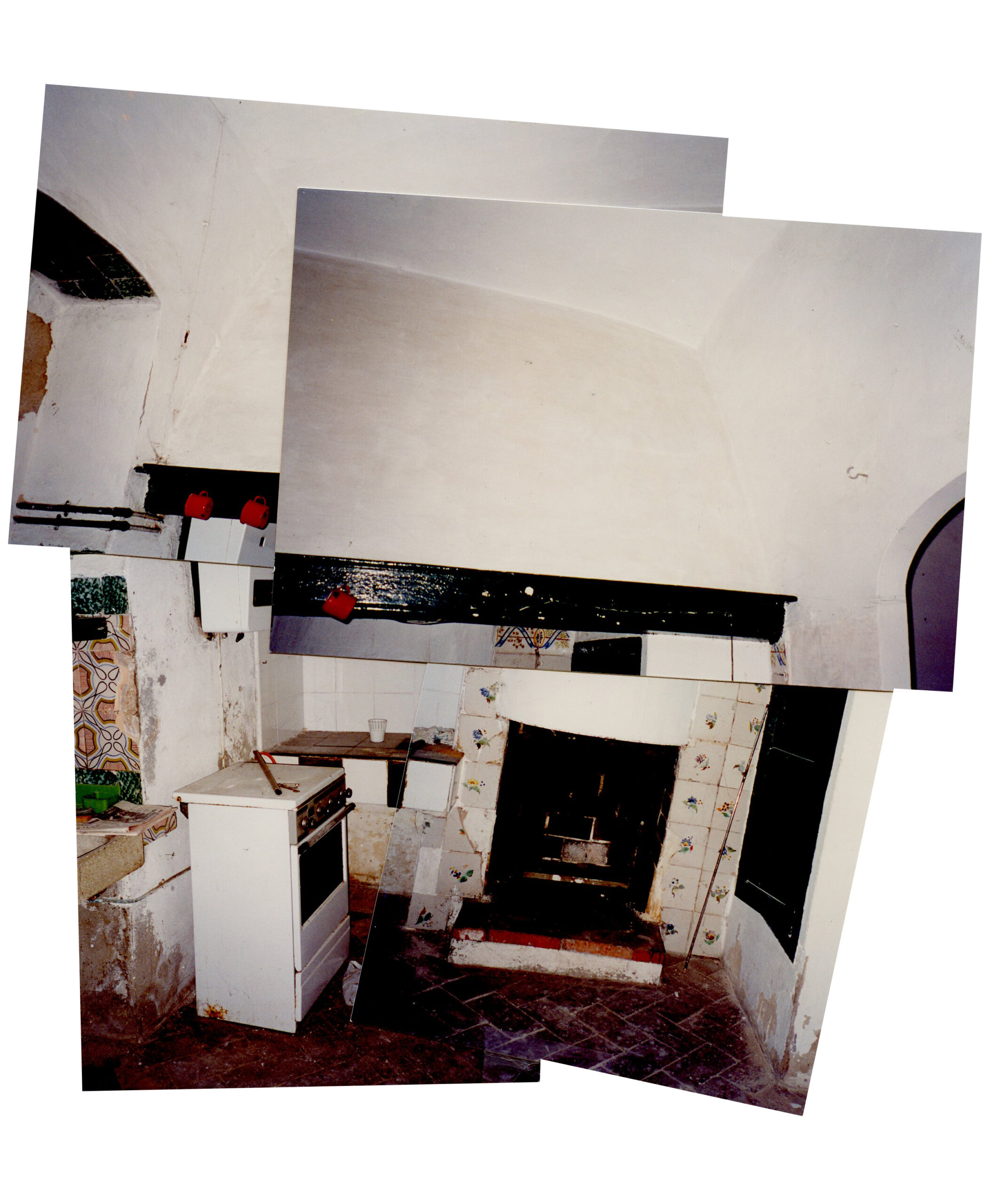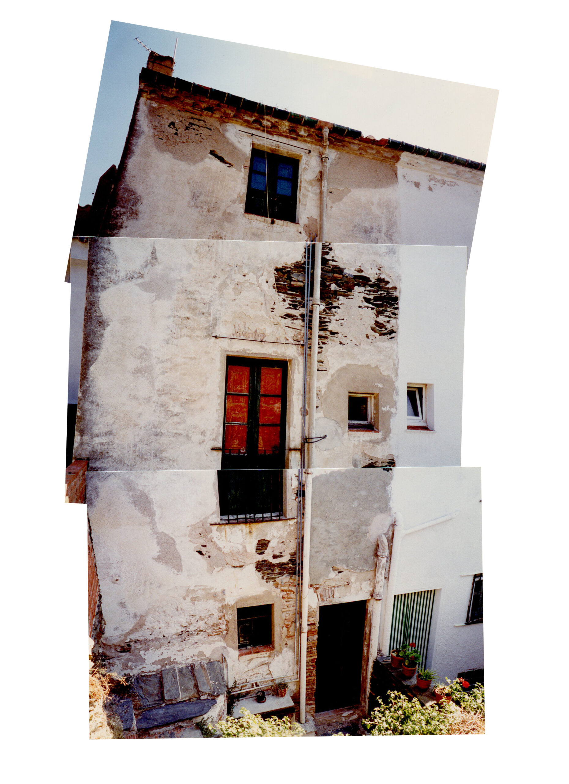 It was built of thick stone walls and a variety of traditional vaulted brick ceilings. The original sitting room on the first floor, with a balcony overlooking the street, had frescoed handkerchief ceilings. The original kitchen/dining room, also on the first floor, was adjacent to a small garden which terraced very steeply to a back street. The top floor had little more than a lookout towards the bay used as a very primitive summer sitting room. The ground floor with a wide arched door to the street was originally a storage space for sea-related artefacts: dinghies, nets, anchors etc. It also contained a water cistern as well as underground wine storage.