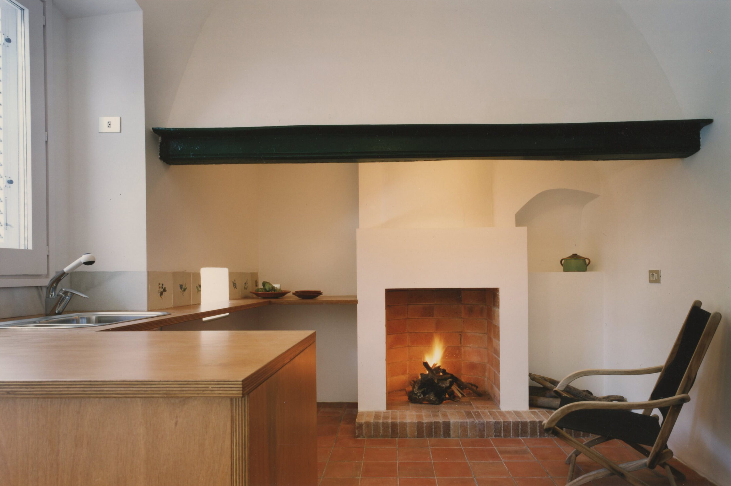 The original house had been “carved” into the stone hillside leaving an existing gap between the building’s stone walls and the natural terrain, allowing for the creation of a new lightwell at the rear of the otherwise dark ground floor. This brick-tile vaulted space was cleared of debris and restored and is the first room encountered upon entering the house from the main street entrance.
