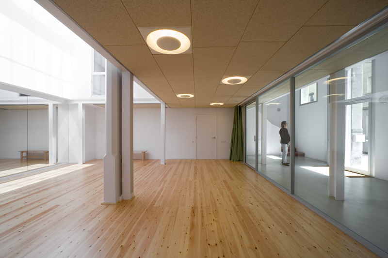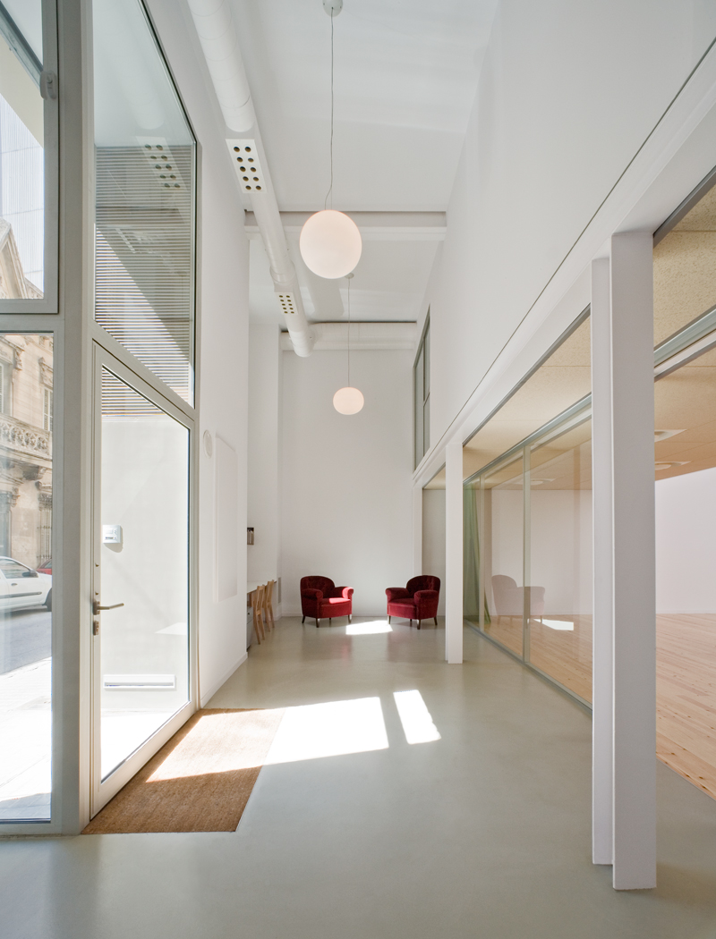 The premises form a space closed in on itself, with façade openings and a roof light that barely provide views of the outside. However, its good orientation enables the cycle of natural light to blend with the artificial light throughout the day.