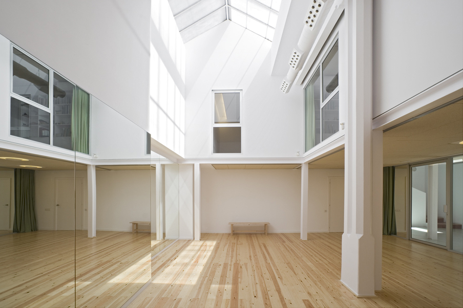 These small premises in the district of Sant Gervasi, at the foot of the Putxet hill, was the space chosen by the clients for refurbishment as a dance and music studio. The premises, situated in an early 20th-century building, is a cube wedged between other buildings, with two free planes: the Ballester Street façade and the roof that is in turn the communal terrace for the building’s dwellings.